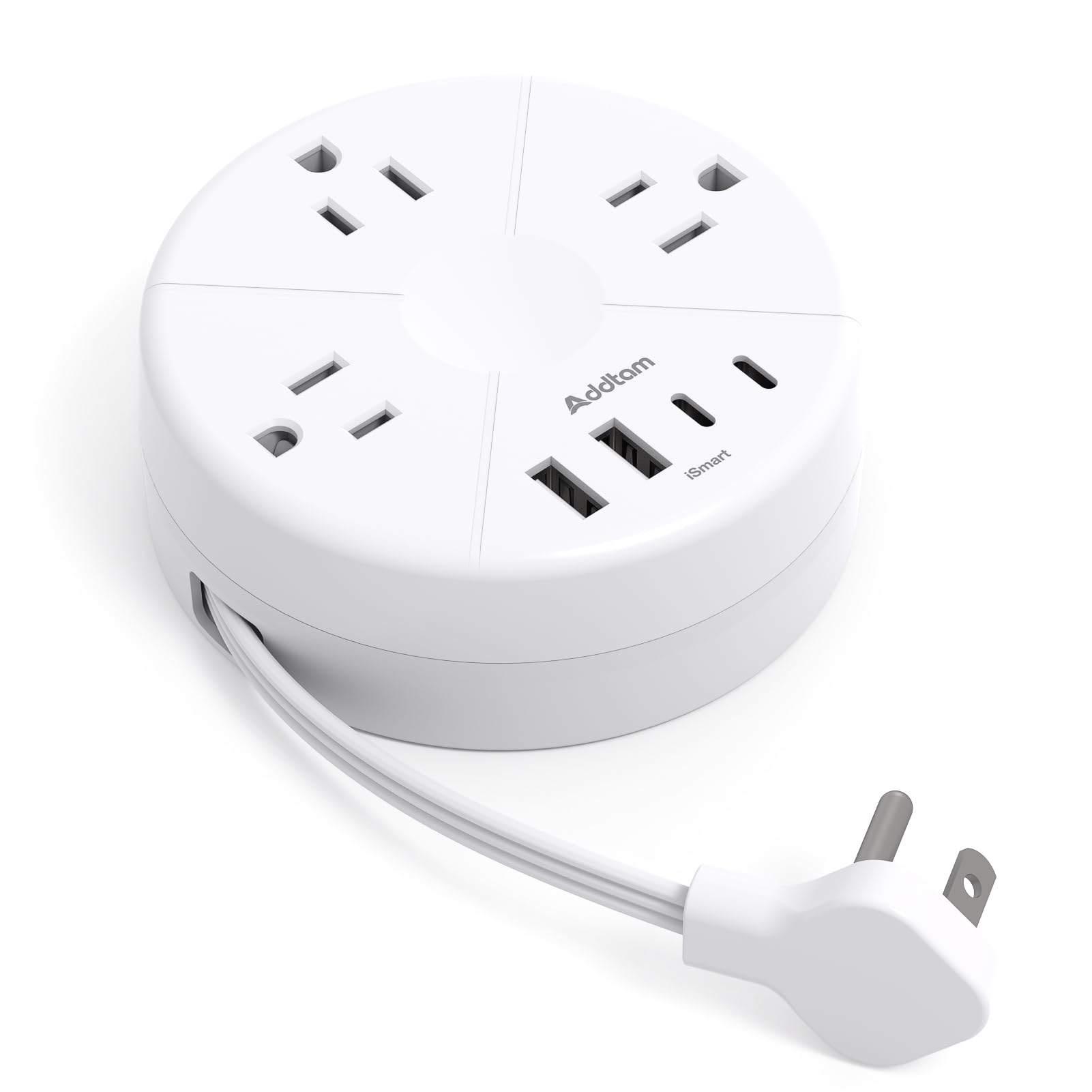 Addtam Cruise Power Strip, 5ft Retractable, 3 Outlets, 4 USB