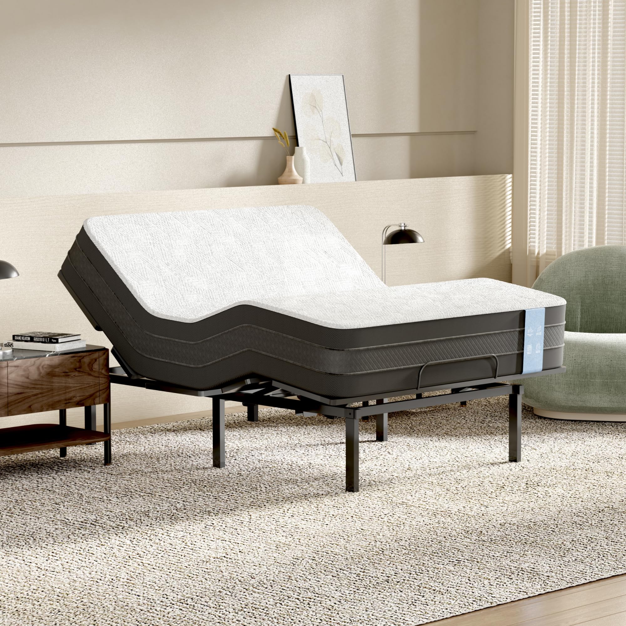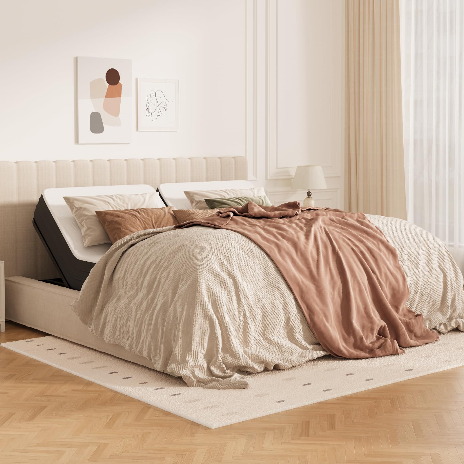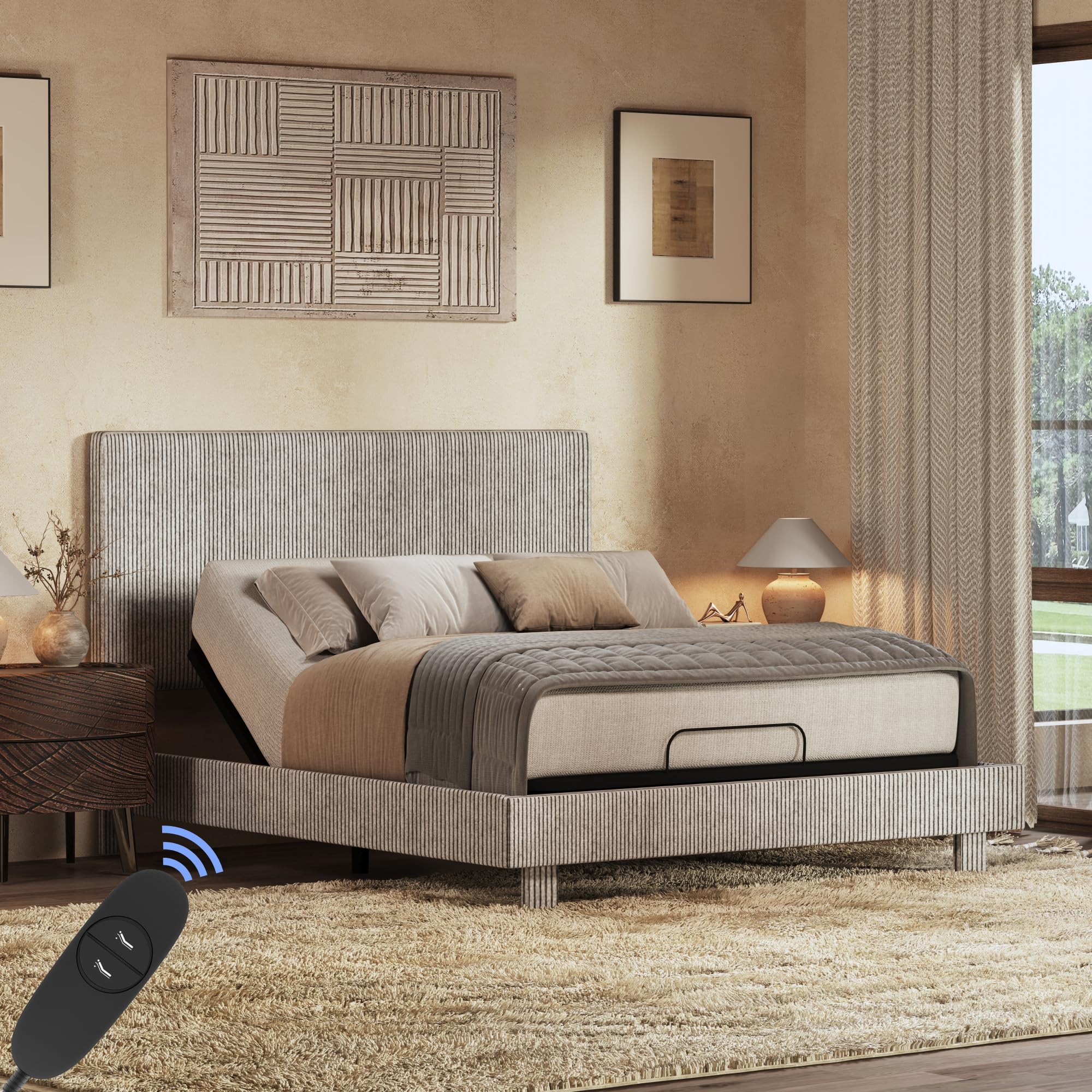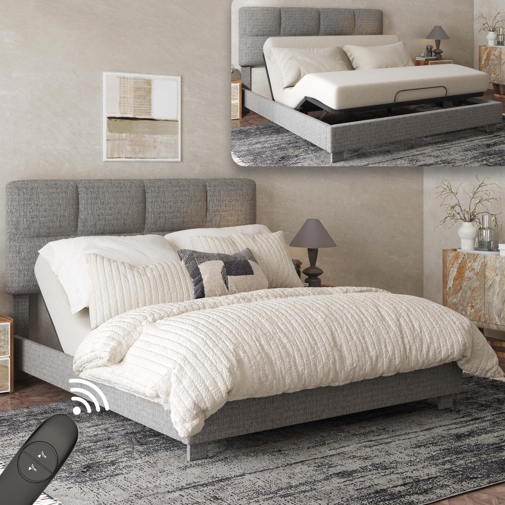 FLEXISPOT Queen Adjustable Bed w/Frame, Linen