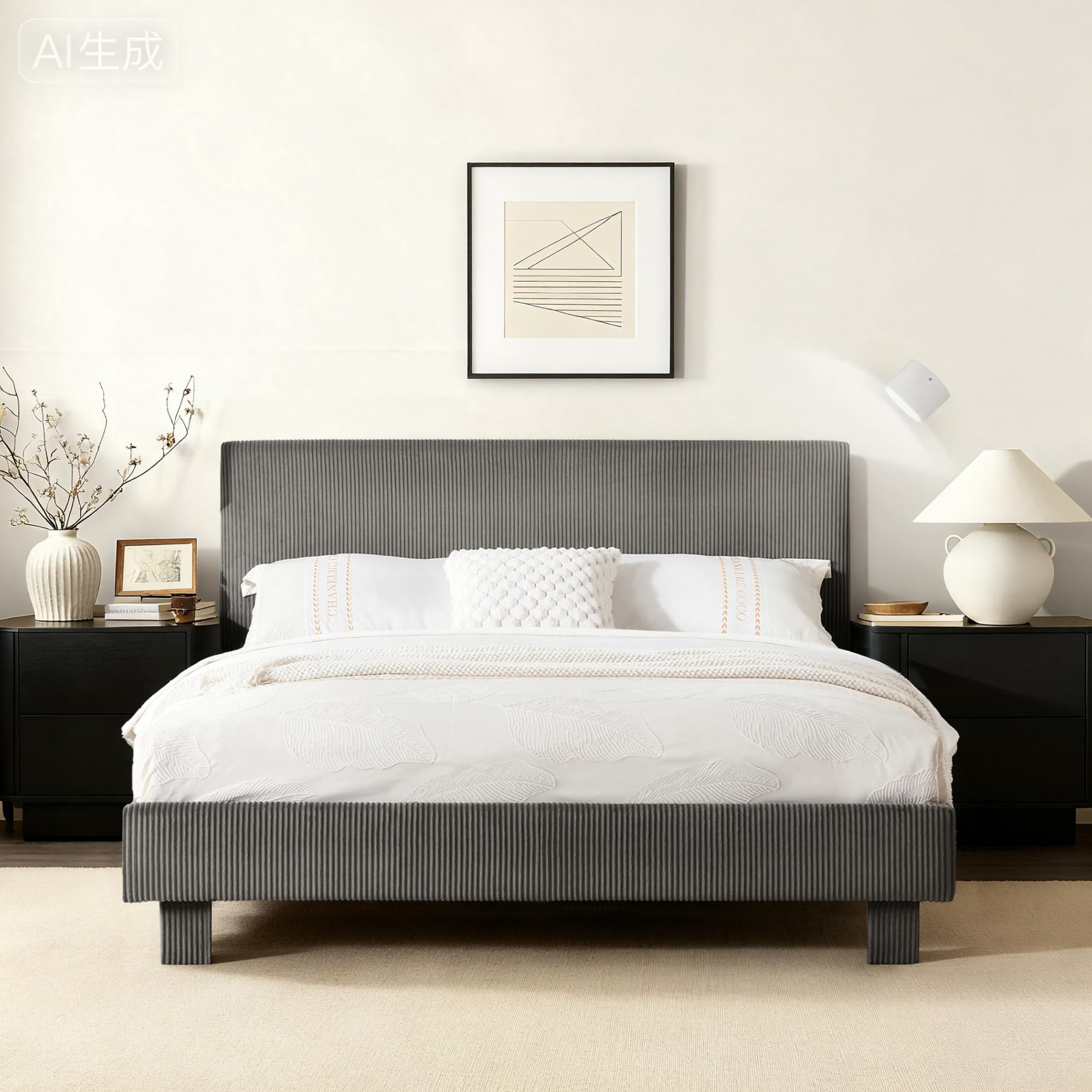 FLEXISPOT Queen Bed Frame, Light Grey