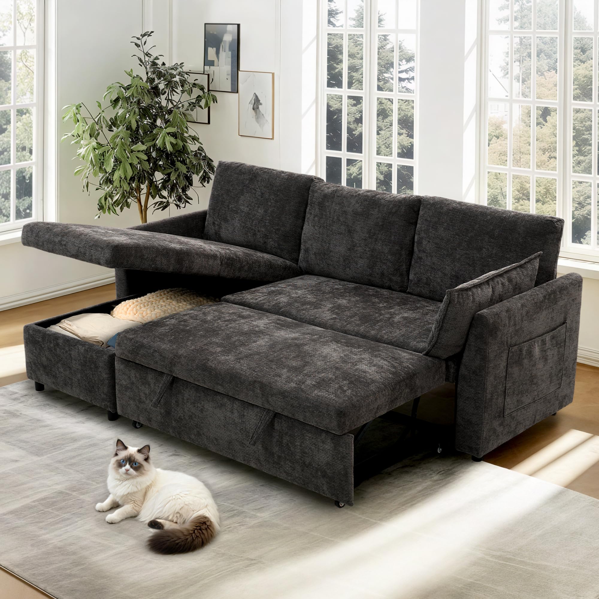 FLEXISPOT XB5 Pull Out Couch Bed, Dark Gray
