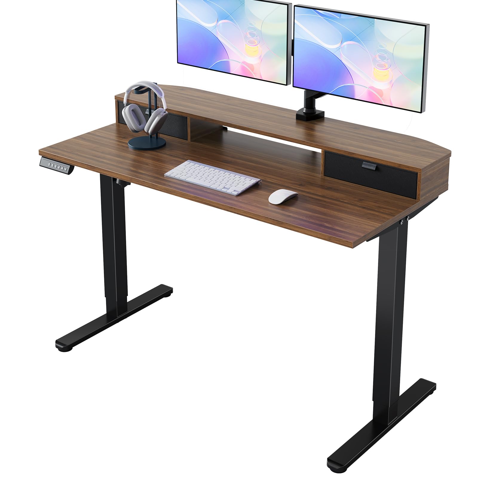 HUANUO 48×24″ Electric Standing Desk with Drawers (Walnut)