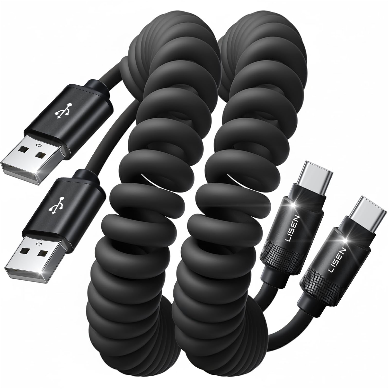 LISEN Coiled USB-A to USB-C Cable, 4FT, 2 Pack (Space Black)