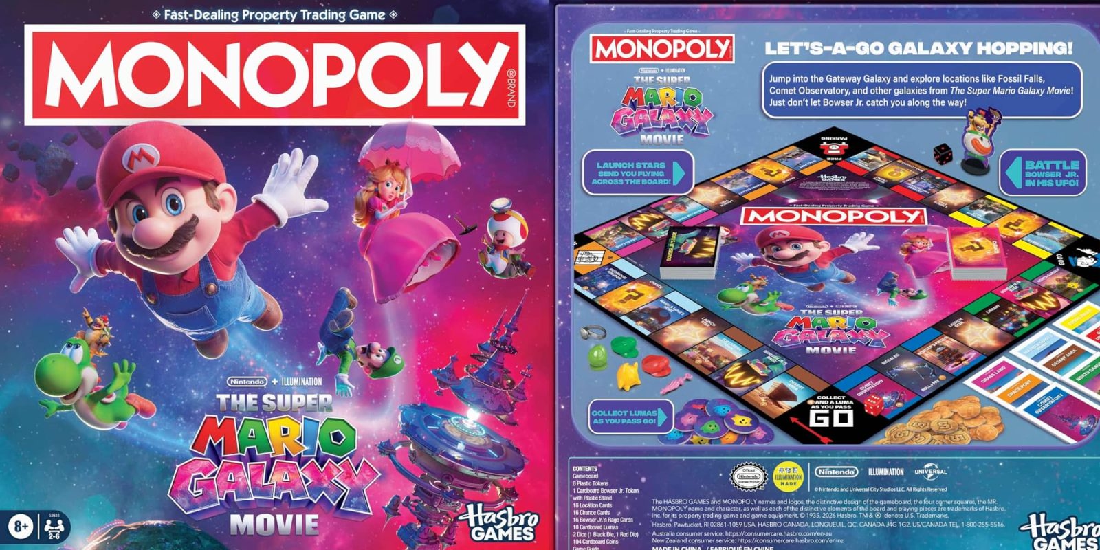 - INSPIRED BY THE SUPER MARIO GALAXY MOVIE: In the Monopoly: The Super Mario Galaxy Movie Edition board game, fans can imagine collecting Lumas with Mario—just like in the film! Includes characters, places, and artwork from the movie