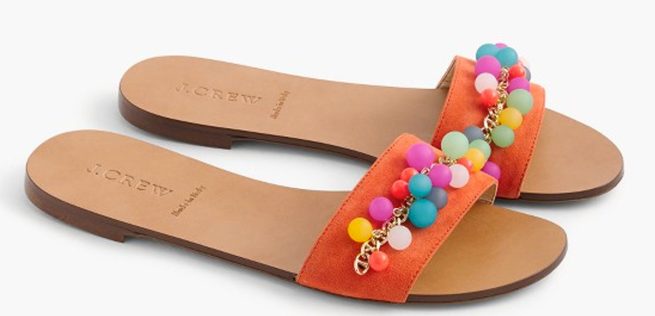 The slide trend is back! Slip-on sandals or slides are a cute and easy piece to have in your wardrobe. The Jcrew Colorful Bauble Slide makes a statement. These look so cute with dresses and jeans alike. The Dolce Vita Kevin Slide is the perfect slide for a vacation. The palm print embellishment is chic and tropical.
