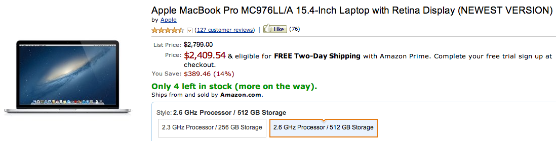 Best Buy offers the just released Retina MacBook Pro 13-inch for just $1614.99. Amazon now matches that price.That’s $85 off, why are you still here?