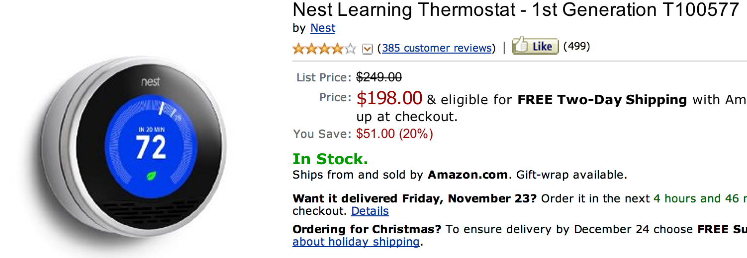 Amazon today has the Nest learning thermostat built by former Apple engineers including iPod father Tony Fadell for $198 with free shipping. That’s the lowest price we’ve ever seen on this first generation of the product by at least $50.