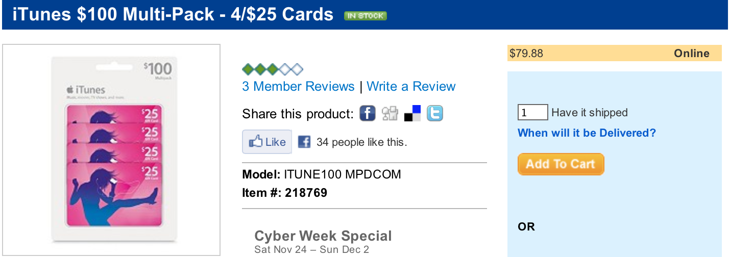 This week, Sam’s Club has iTunes gift cards slightly over 20% off in both 4x$15 and 4x$25 denominations. That’s the biggest discount we’ve ever seen in the US.