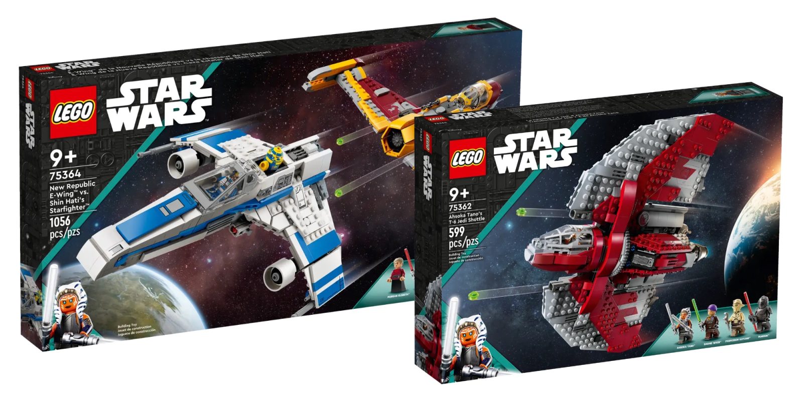 Last night saw the new buildable LEGO Chewbacca hit the scene, and now Ahsoka is taking the spotlight with a pair of new sets from the upcoming Disney+ series. Arriving in September, you can now pre-order the upcoming New Republic E-Wing vs. Shin Hati’s Starfighter (75364) and Ahsoka Tano’s T-6 Jedi Shuttle (75362).
